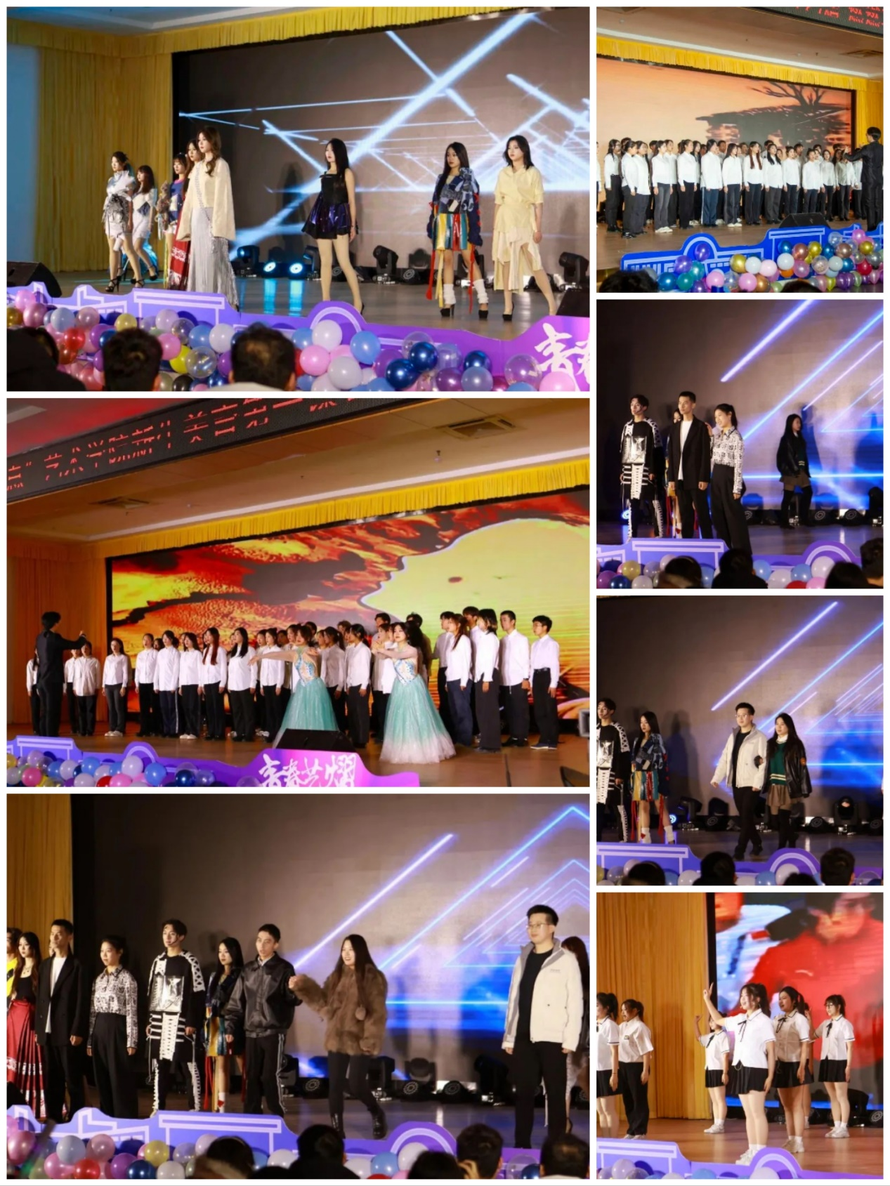 夜色渐浓,华灯初上,礼仪男女步《REVEAI啟》,诠释优雅,传递时尚,追寻美的艺术,老师们也一齐登场,带来无比惊喜!未来是美好的,我们要勇敢去追梦,手语操《一起向未来》激励着每一个人,蚌中的沙,也能绽放珍珠般耀眼的光携手共进,让我们一起努力,加油向未来。抗日战争时期,凝聚满满中华强大力量,歌曲合唱《乡谣》,“我爱你中国”一句句深情表白,响彻舞台,让浓浓的家国情怀,奔流每个人心中!