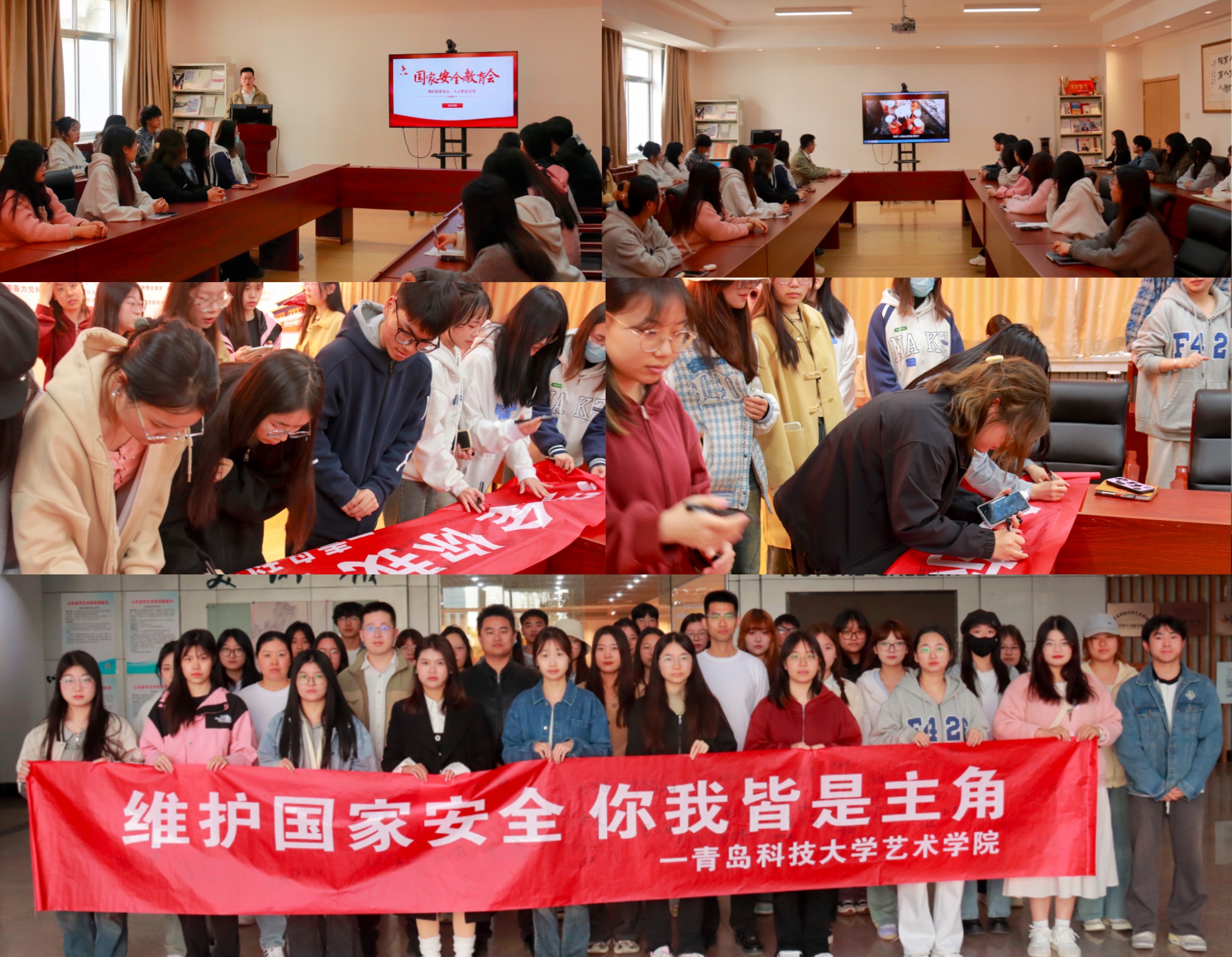 理论宣讲强思想,签名承诺促行动。4月9日下午,学院团委在213会议室召开国家安全教育主题宣讲会,团委辅导员盛士峰老师担任主讲人,学生骨干参加会议。会上,盛士峰以《维护国家安全,你我都是主角》为题,结合国家安全最新宣传片,从“什么是国家安全”“国家安全的重要意义”“当代青年学生如何维护国家安全”三个部分进行了全面深入的讲解。本次理论宣讲使得同学们“对国家安全就在身边”的感受更加直观深刻,让“维护国家安全,人人有责”的责任意识得到了进一步强化。理论宣讲结束后,全体参会师生共同参加了“维护国家安全,你我皆是主角”的签名承诺活动。