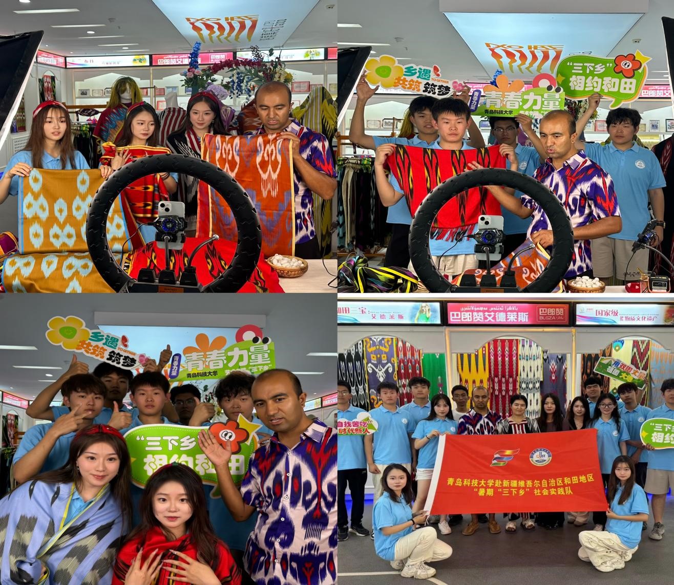 实践团前往新疆和田,开展了一场别开生面的非遗文化交流活动。实践团成员们不仅深入参观了当地非遗制作工坊,还创新性地通过直播平台,将精美的非遗产品推向全国观众。在和田,实践团成员们亲眼见证了艾德莱斯绸非遗产品的制作过程,被匠人们精湛的技艺和深厚的文化底蕴深深吸引。通过直播带货,不仅让更多人了解了和田的非遗文化,也为当地手工艺人带来了实实在在的收益。
