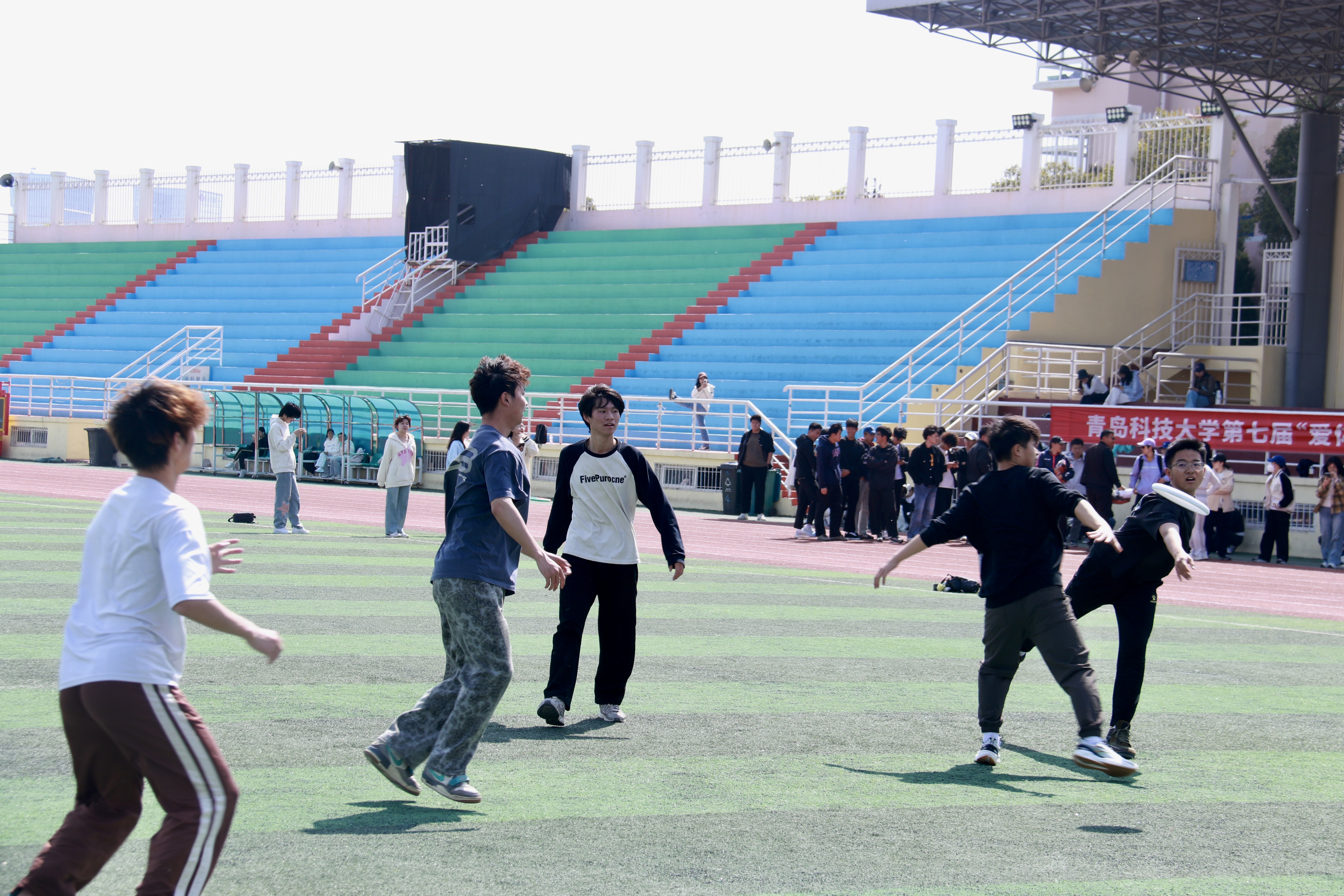 活动现场,两人三足环节,选手们肩并肩喊着口号,绑腿协作冲刺,默契在汗水与欢笑中升温;飞盘接力环节,飞盘划过弧线,队员们奔跑传接,活力身影点燃全场热情。观众加油声此起彼伏,洋溢着青春风采。
