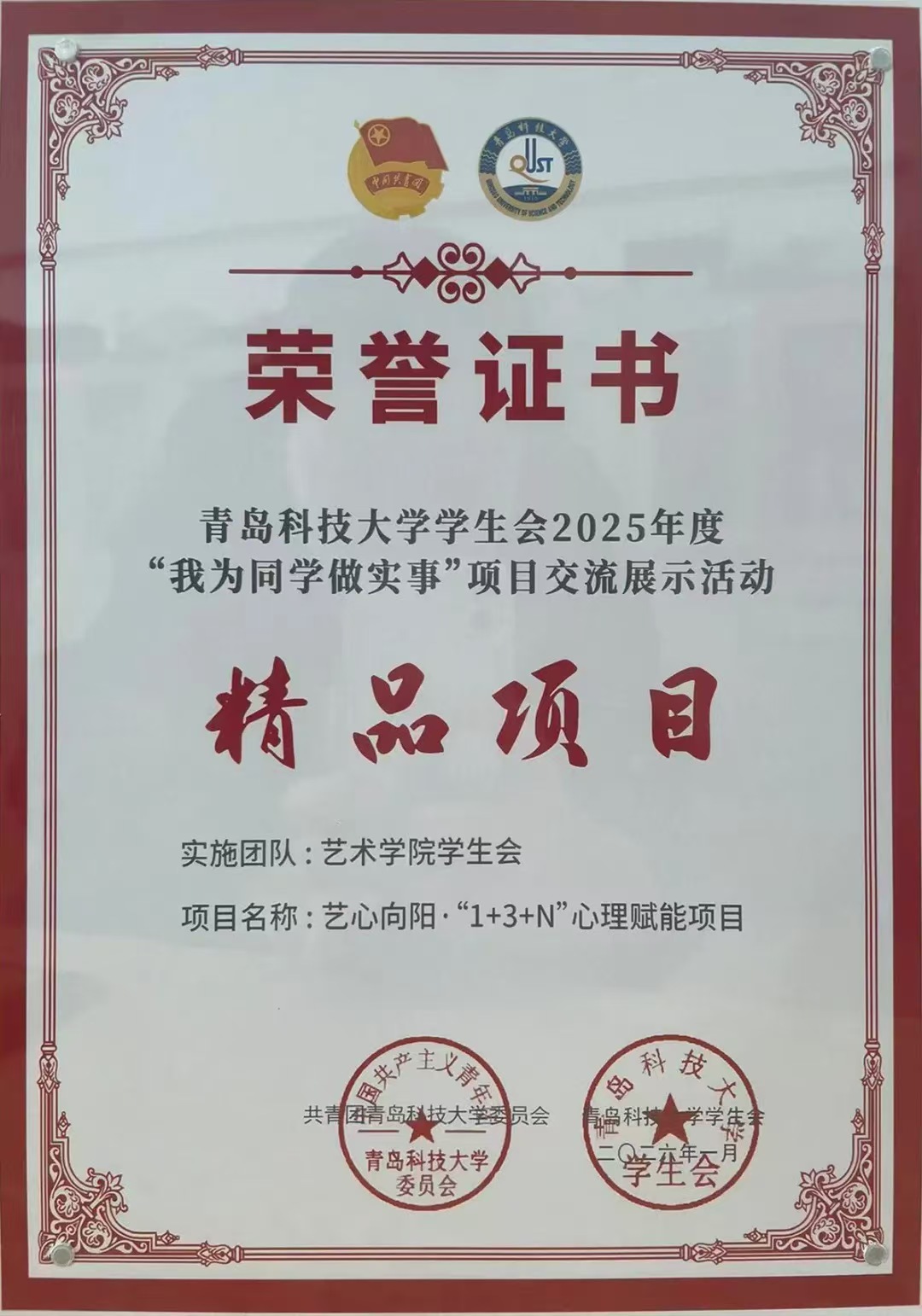 学生会“艺心向阳·‘1+3+N’心理赋能项目”获评学校学生会2025年度“我为同学做实事”精品项目,学院研究生会获评2025年度“先进研究生会”。