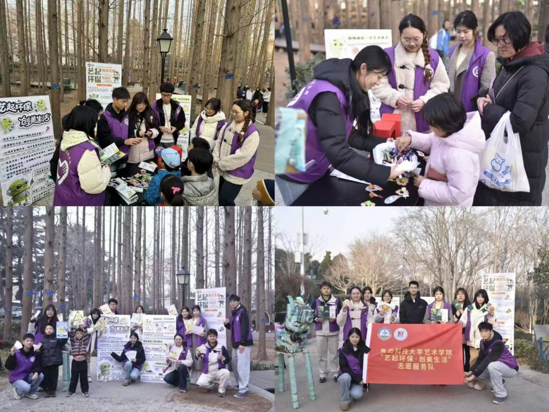 艺心守护绿色,行动践行担当。在团委老师的带领下,青年学子走进公园,将专业优势与环保志愿服务深度融合。围绕噪声污染、土壤退化、垃圾分类等环保主题,制作了科普展板与宣传页,用活泼的卡通形象和清晰的图文,把专业知识转化为通俗易懂的环保语言,让环保理念变得生动可感。志愿者们耐心讲解环保小知识,通过“废物利用手工DIY”等互动小游戏,引导大家在趣味体验中学习垃圾分类技巧,将雷锋精神融入守护绿水青山的点滴实践。