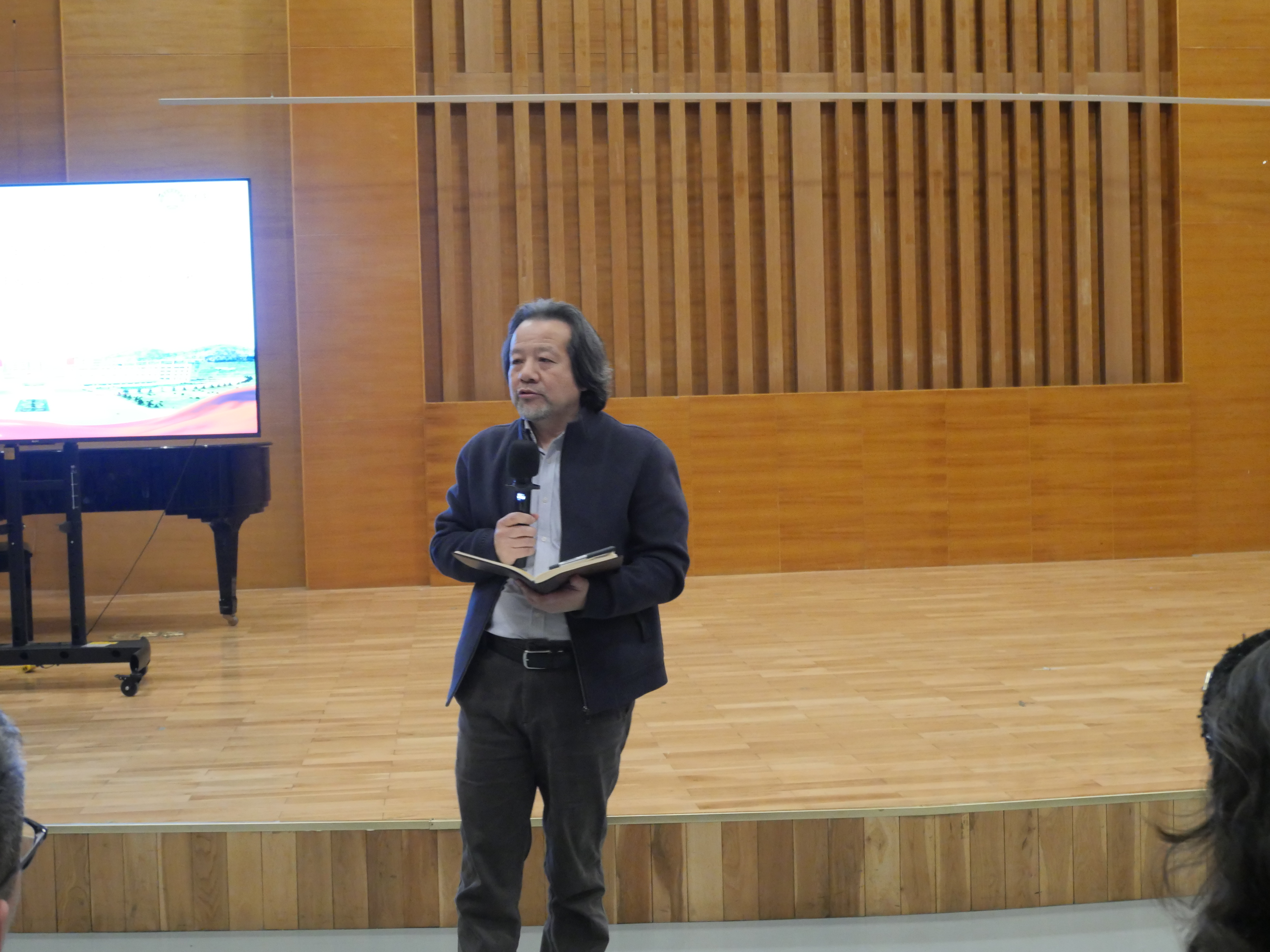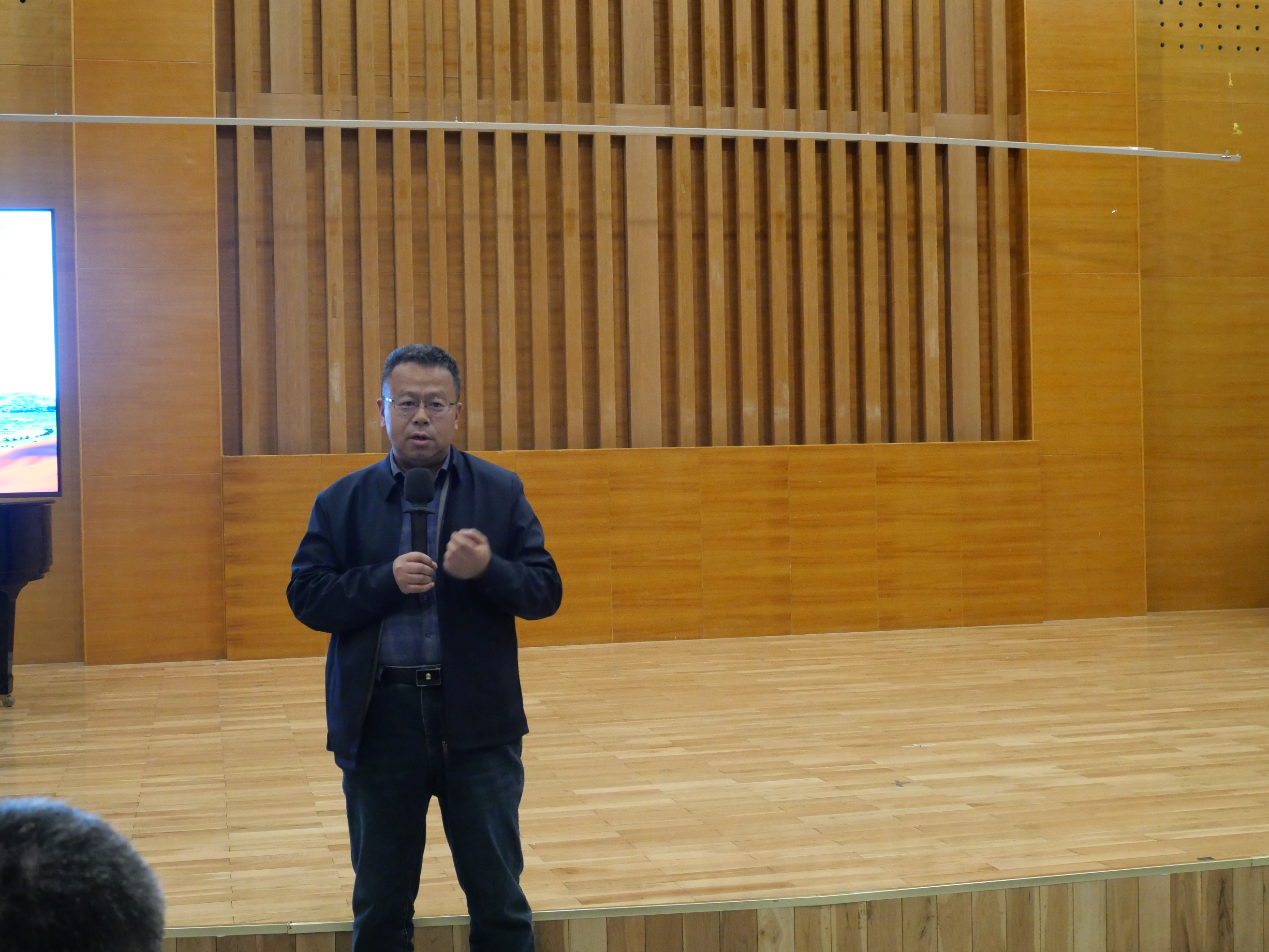 在音乐厅召开全院教职工大会,学院领导班子、全体教职工参会,会议由党委书记刘庆主持。
