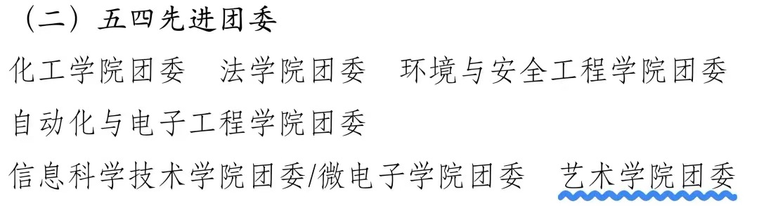 学院团委荣获“五四先进团委”称号,同时,环艺 231、环艺241、 绘画241、 设计研243等四个基层团支部获评“五四先进团支部”,充分彰显了学院基层团组织阵地建设的工作实效。