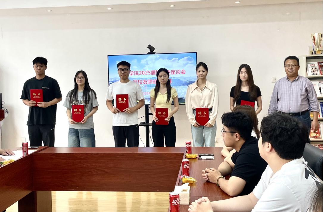 在213会议室举办2025届毕业生座谈会暨校友联络员聘任仪式,学院领导班子、辅导员、2025届毕业生代表参加座谈。会议由毕业生辅导员颜枫主持。