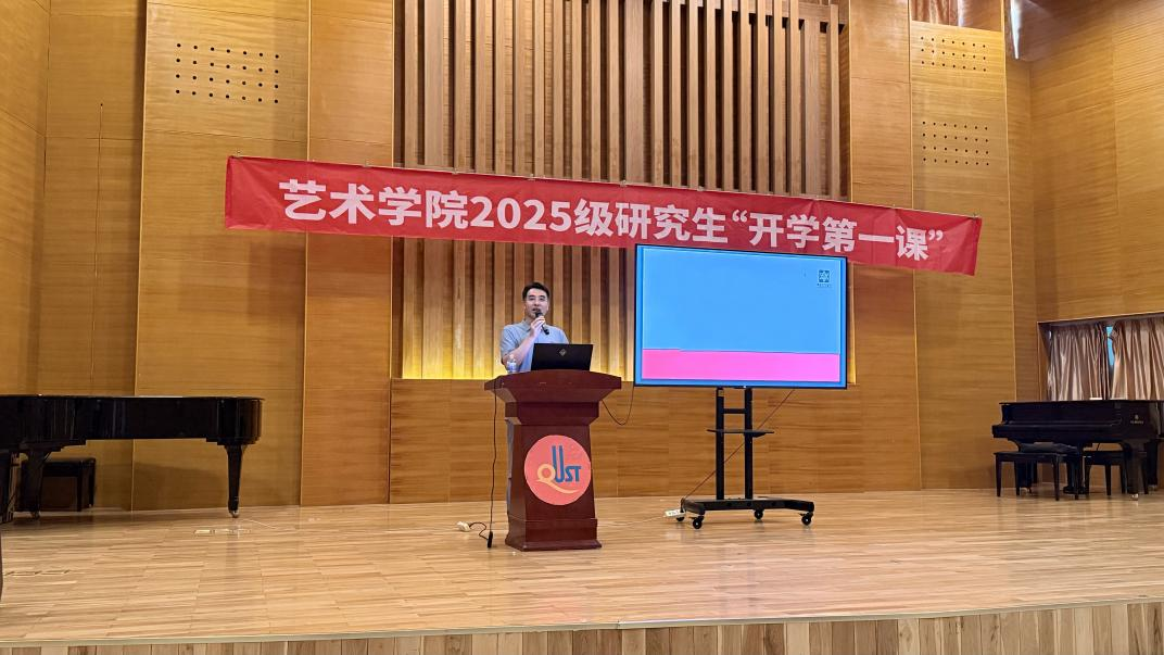 9月20日下午,91live 2025级研究生“开学第一课”在音乐厅举行。学院党委副书记兼副院长丁一宁、副院长禹青、优秀校友代表田彬出席活动,研究生辅导员董天予及全体研究生新生参加。活动由董天予主持。