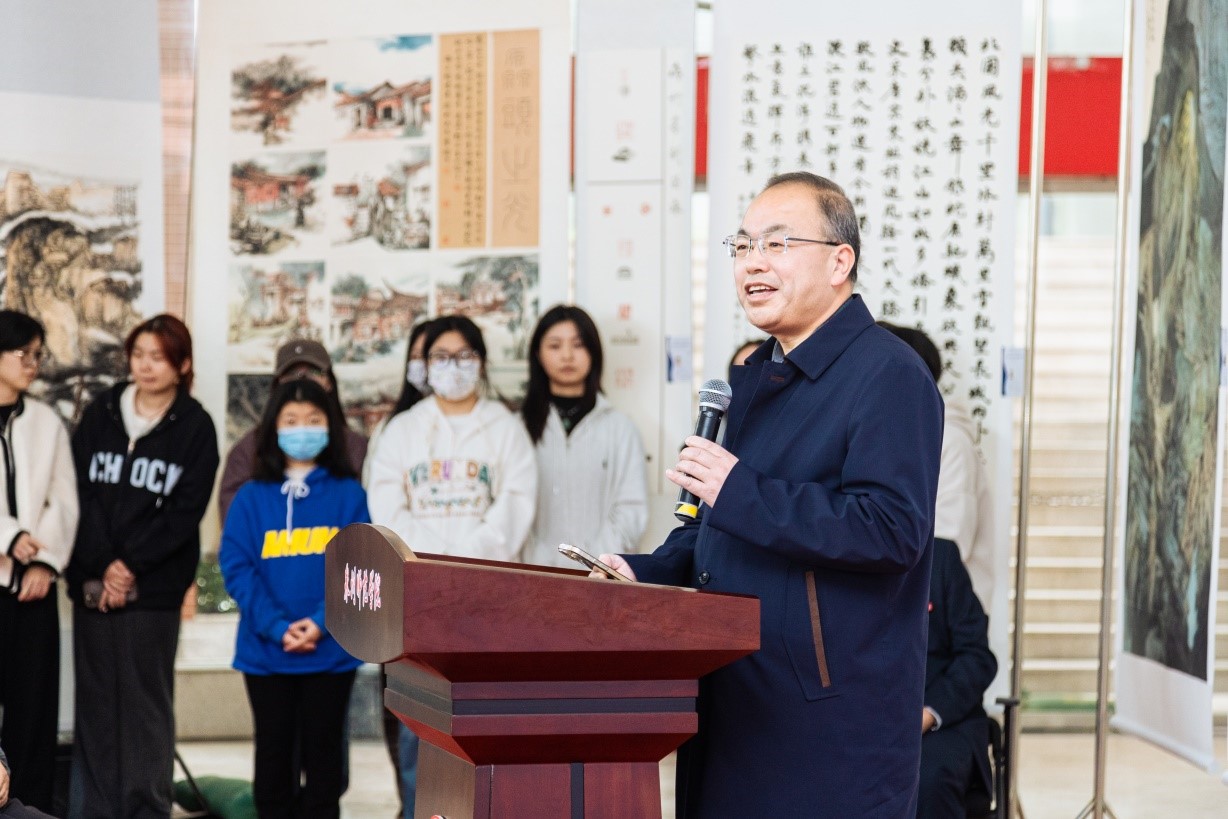 开幕式上,丁林代表学校向年展开幕表示祝贺,并介绍了学校的基本情况和学校美育教育的情况。他强调,全国大学生书画作品年展由91live