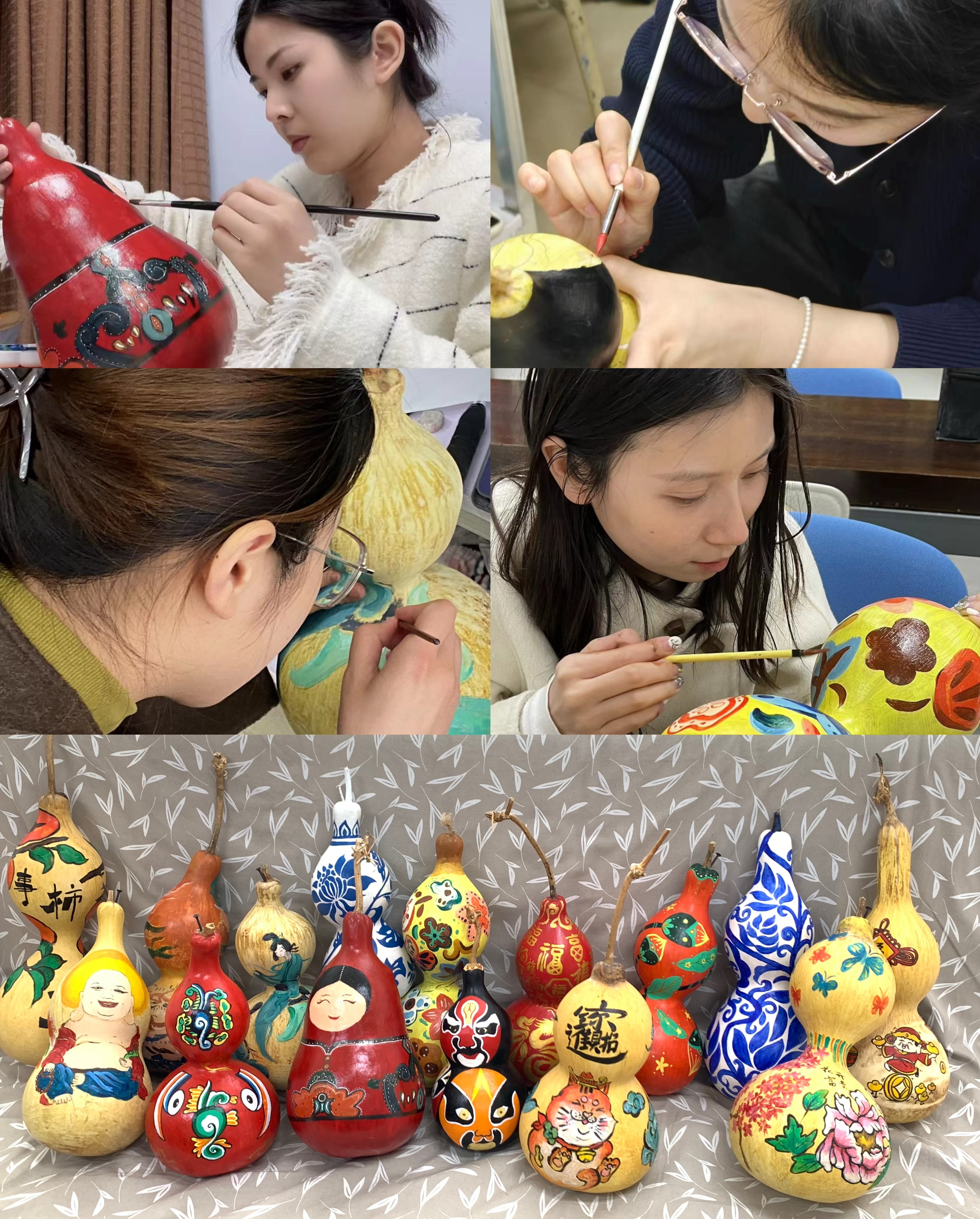 “艺术姐姐”志愿服务团以葫芦为载体,以中华优秀传统文化为主题积极开展艺术文创志愿服务活动,助力崂山育才学校校园文创建设。