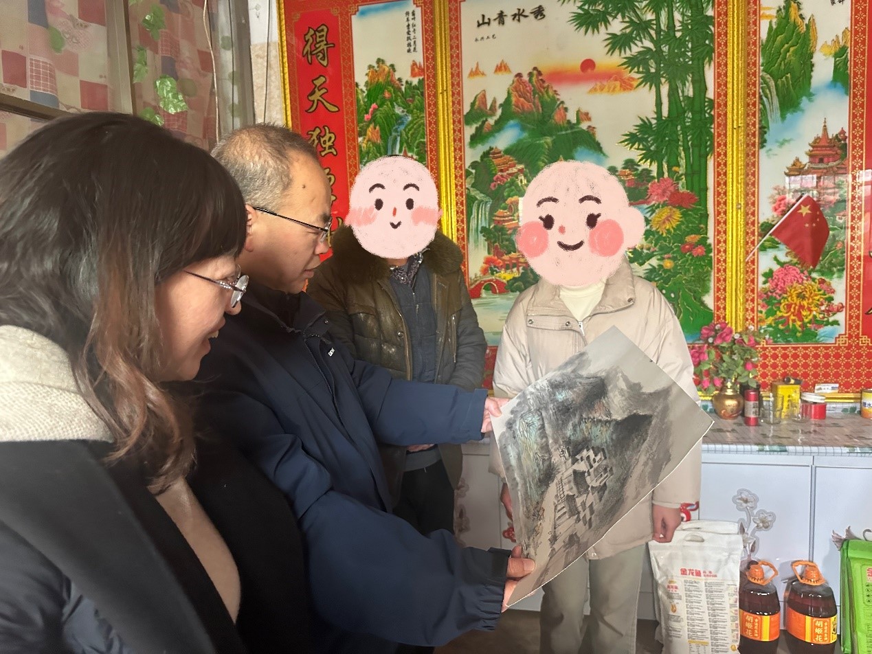 家访团队与学生及家长进行了面对面的深入交流。在交流中,老师们详细询问了学生的家庭状况和成长环境,就学校的资助政策、学生的未来规划等方面进行沟通。丁林代表学校向学生一家赠送科大“福”字,学生向学校赠送《溪山行旅》绘画作品。