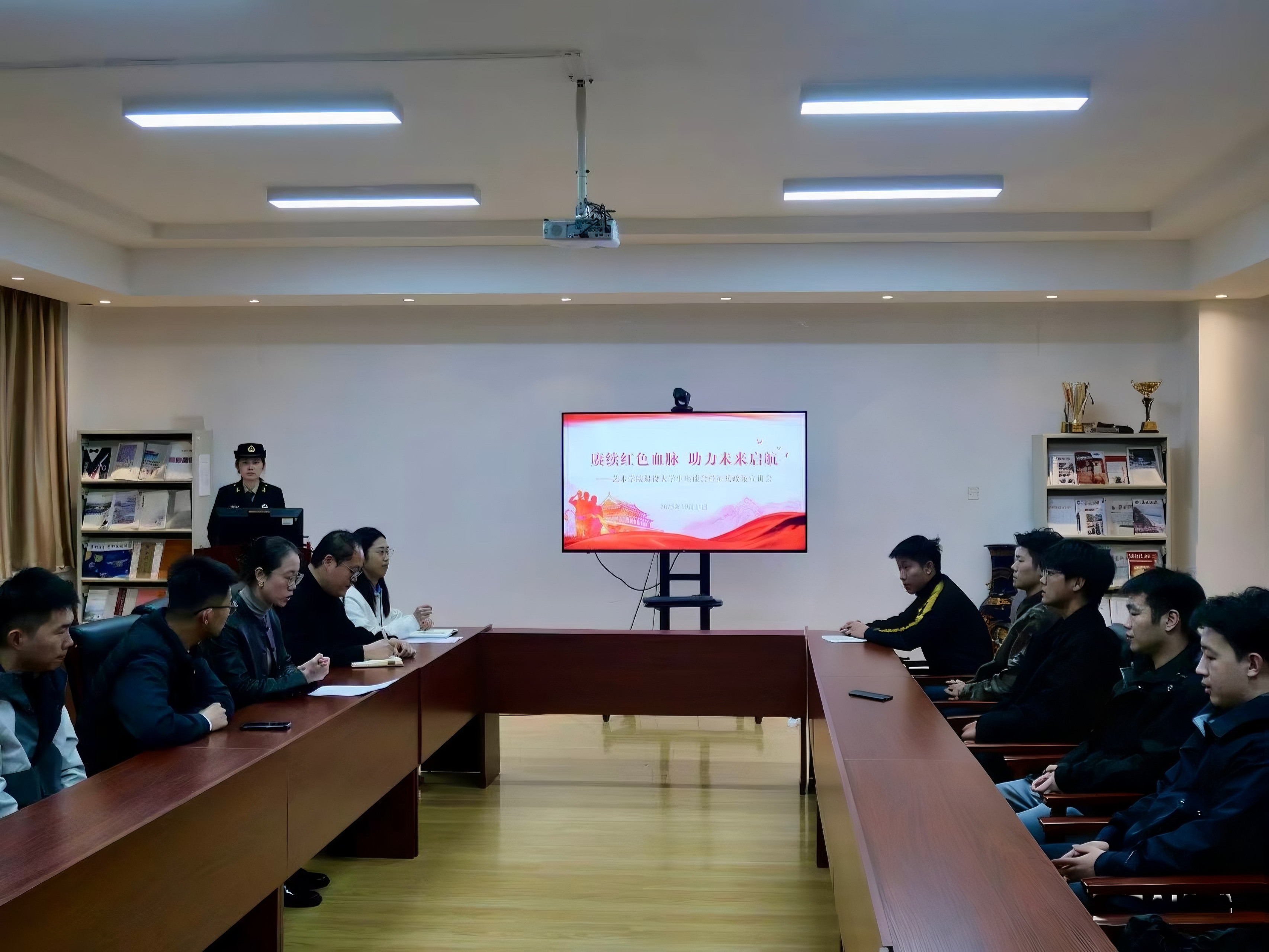 在213会议室召开“赓续红色血脉 助力未来启航”退役大学生座谈会暨征兵政策宣讲会。学院党委副书记兼副院长丁一宁、各年级辅导员、退役大学生士兵代表、有意向应征入伍的同学共同参会。