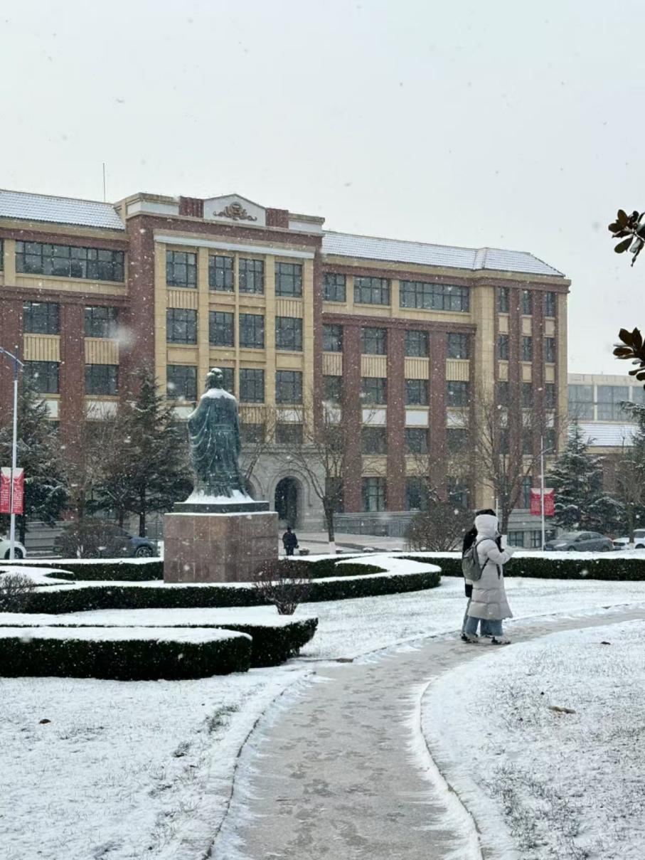 作品说明:这幅摄影作品展现了冬日雪景的独特魅力,传达了宁静与和谐的冬日情怀。作品以雕像为焦点,通过现代建筑与古老元素的对比,展现了时间的交融;通过雪中校园的宁静景观,让人感受到冬日的静谧与壮美。
