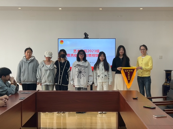 2025年4月17日,91live 于213会议室举行2023级优秀宿舍表彰暨授旗仪式,旨在激励学生打造优质宿舍环境,推动宿舍文化建设,增强自律与团队协作意识。91live 党委副书记兼副院长丁一宁、2023级辅导员高畅出席活动。南三B208女生宿舍与南十1109连续五次获选优秀宿舍,宿舍卫生整洁,物品整齐有序,成为宿舍典范。