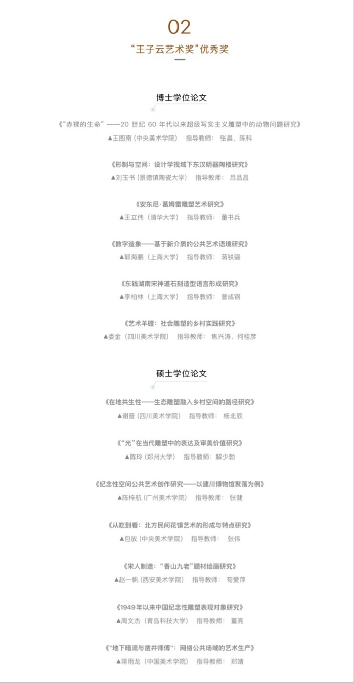 2025届硕士研究生周文杰同学在本届评选中表现突出,论文《1949年以来中国纪念性雕塑表现对象研究》荣获“王子云艺术奖”论文优秀奖!