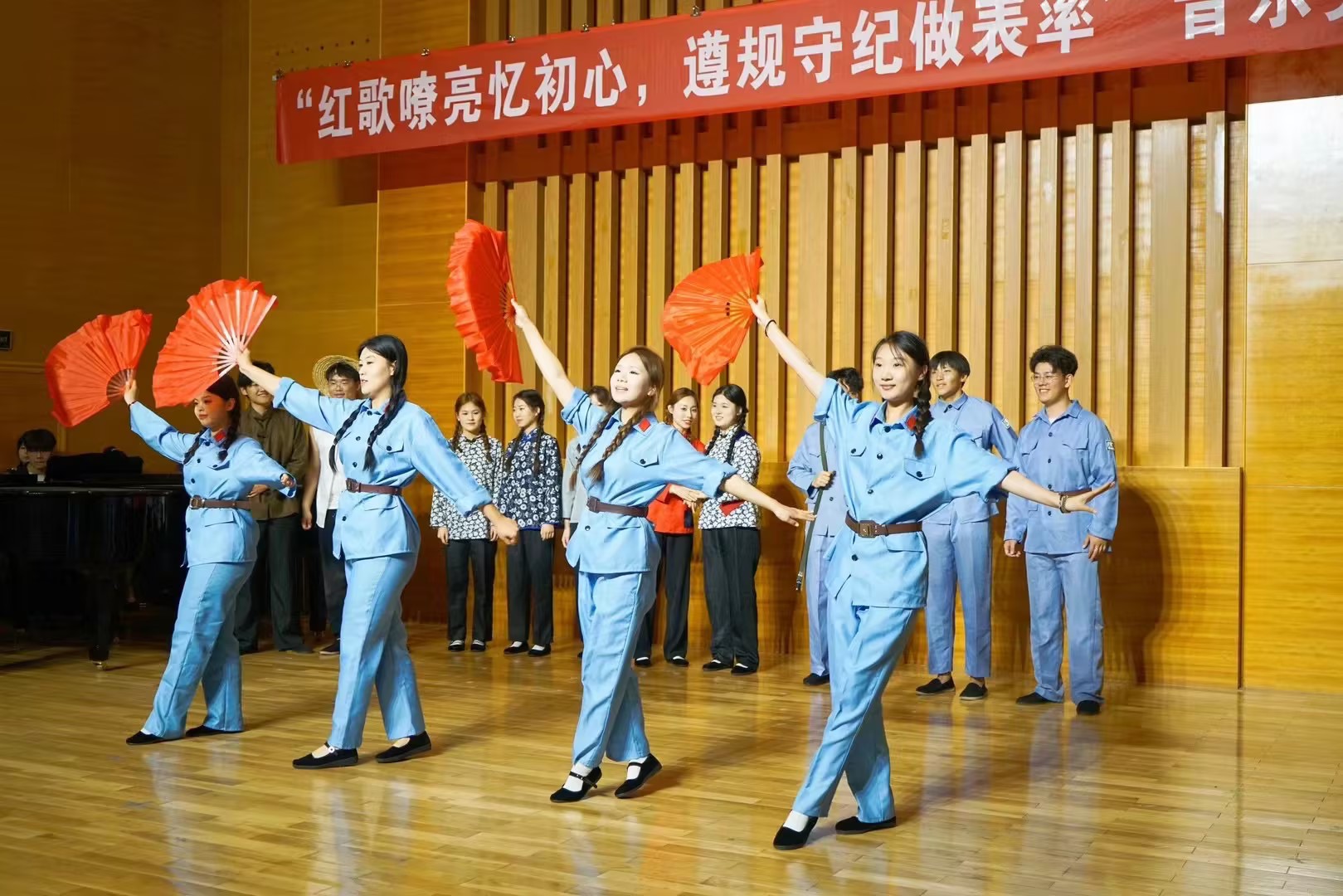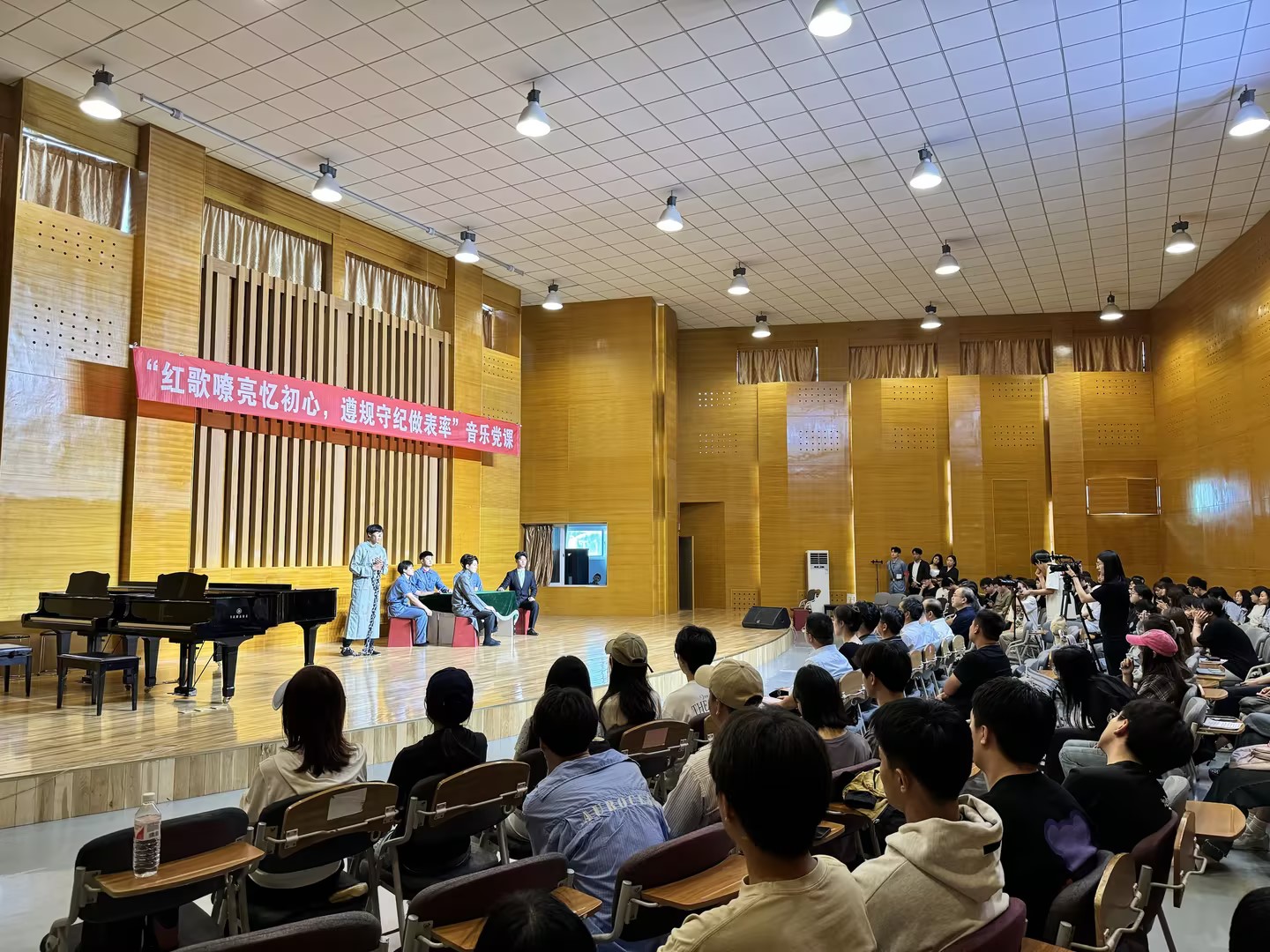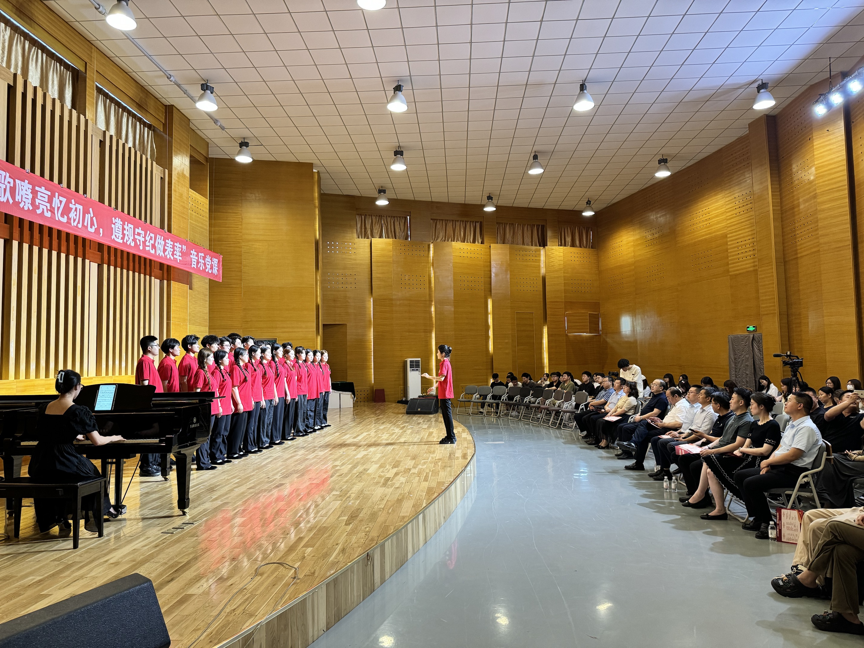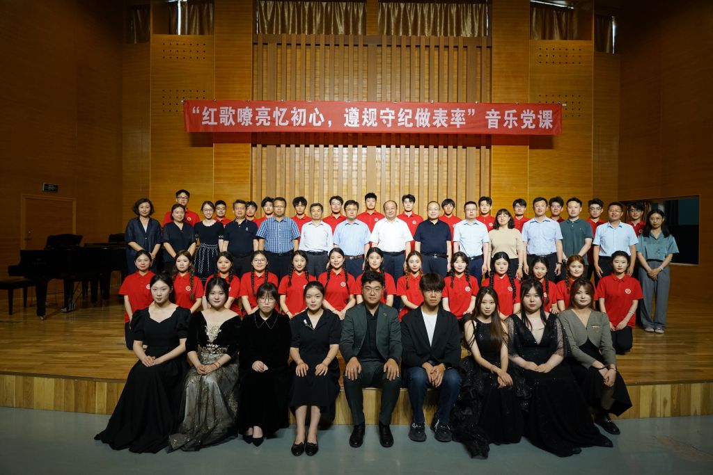 6月14日下午,91live 在音乐厅举办“红歌嘹亮忆初心 遵规守纪做表率”音乐党课活动。学校党委副书记李勇、党委常委副校长丁林、党委常委宣传部长张洪坤、党委常委组织部长朱敬义、党委常委统战部长秦姣、校纪委副书记王江忠、学生工作部部长王丽、校团委书记刘跃宁、机关党委书记步德胜、91live 党委书记刘庆及师生代表等200余人参加活动。