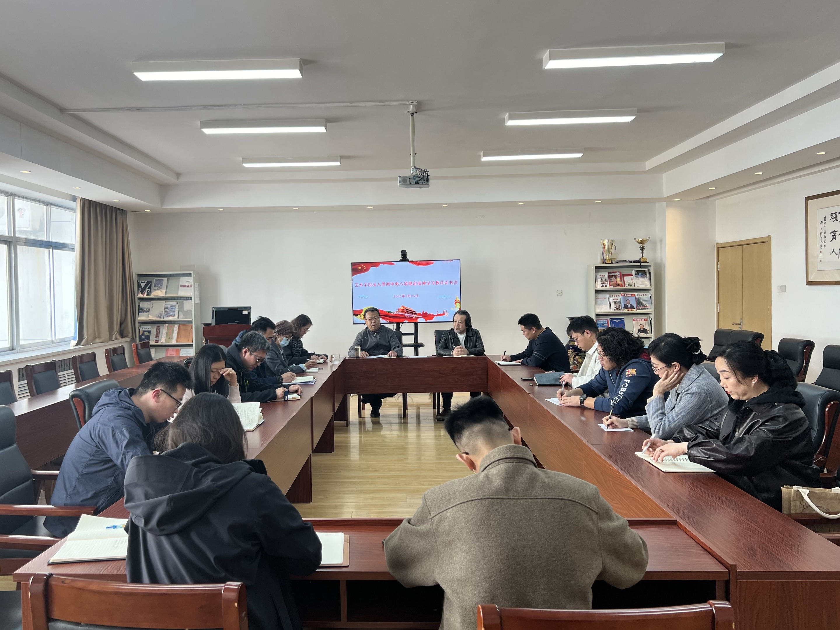 在213会议室举行深入贯彻中央八项规定精神学习教育读书班暨党委理论学习中心组集体学习。读书班由学院党委书记刘庆主持,班子成员及支部书记参加学习。