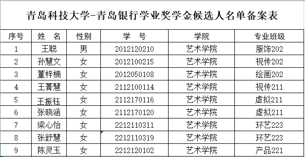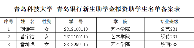 根据学校《关于评审2023年度青岛银行奖助学金的通知》的精神,经个人申请、材料初审、民主评议等环节,现就学院青岛银行奖助学金拟推荐名单进行公示,公示时间2024年4月30日-2024年5月7日。
