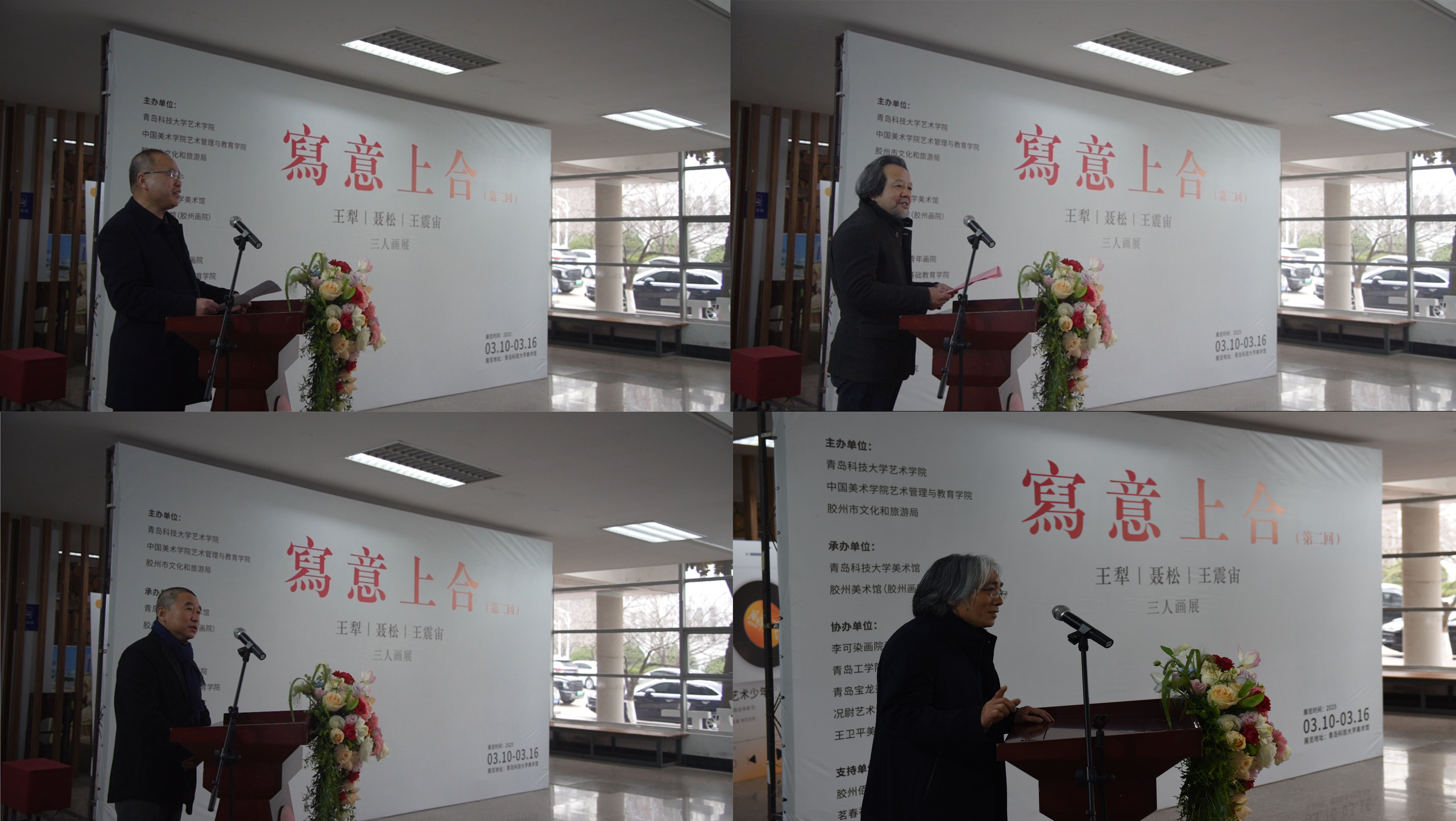 丁林副校长、青岛市美术家协会主席张风塘以及参展画家代表聂松教授分别发表了致辞。