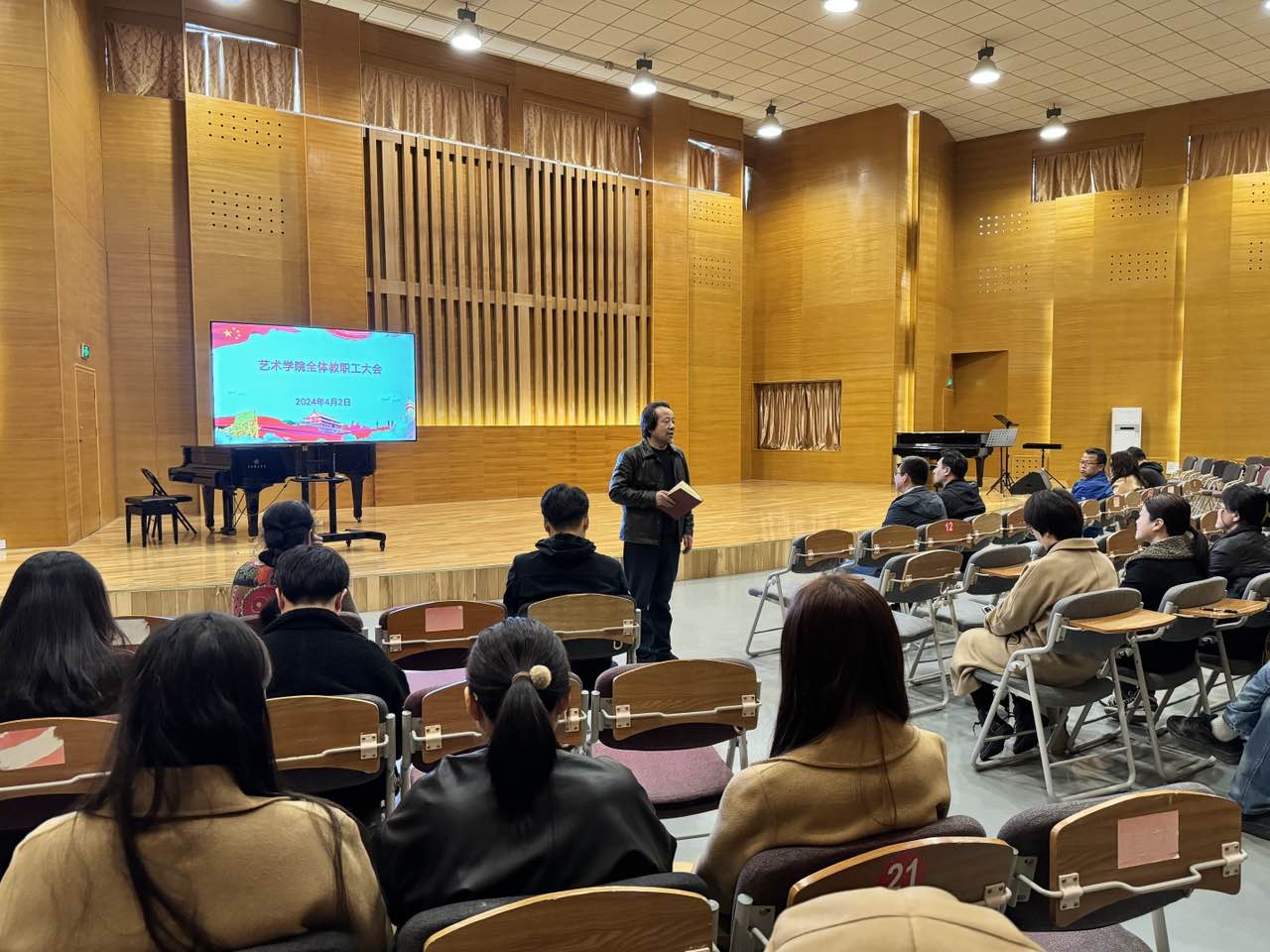 全院教职工大会暨科级干部选拔民主推荐会在学校美育中心音乐厅召开,学院全体教职工60余人出席会议。会议由学院党委书记刘庆主持,以无记名投票的方式进行民主推荐。
