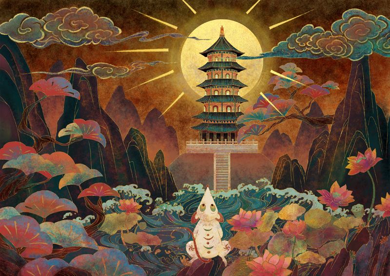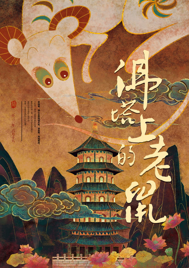 吴浩演、徐凯分别是美术学专业绘画创作研究方向、艺术设计专业视觉设计与数字艺术研究方向的研究生,她们在崔建军、蔡丽娟两位老师的指导之下,基于对传统文化共同的喜爱,选择中国传统民间故事题材和绘画风格完成了《佛塔上的老鼠》系列插画作品。