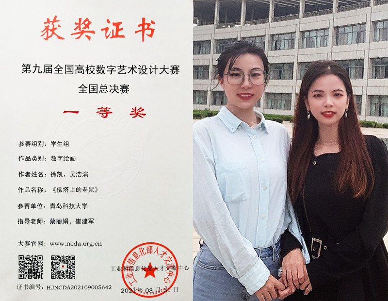 2020级研究生吴浩演、徐凯两位同学联合创作的《佛塔上的老鼠》作品荣获全国总决赛一等奖。