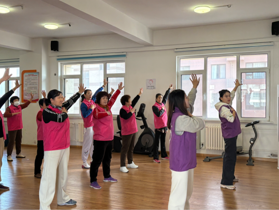 活动现场,艺术姐姐们凭借着扎实的舞蹈功底和丰富的教学经验,耐心地向社区居民们讲解舞蹈动作。从基础的步伐到优美的手势,再到富有感染力的表情,每一个细节都悉心指导。她们将爱国主题巧妙地融入舞蹈编排之中,伴随着激昂奋进的爱国歌曲旋律,居民们翩翩起舞,用肢体语言诉说着对祖国的热爱与祝福。