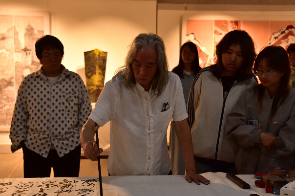 创作间隙,校友们围绕“新时代书画艺术的传承与创新”展开深度研讨,结合自身创作经历,就“传统书画技法与当代审美融合”“书画作品的时代表达”“青年书画人才培养路径”等议题建言献策。“青年学子要先扎稳传统笔墨根基,再从生活与时代中汲取灵感,才能创作出有温度、有力量的作品。”校友们的分享,为在场师生带来了前沿的艺术理念与实践经验。