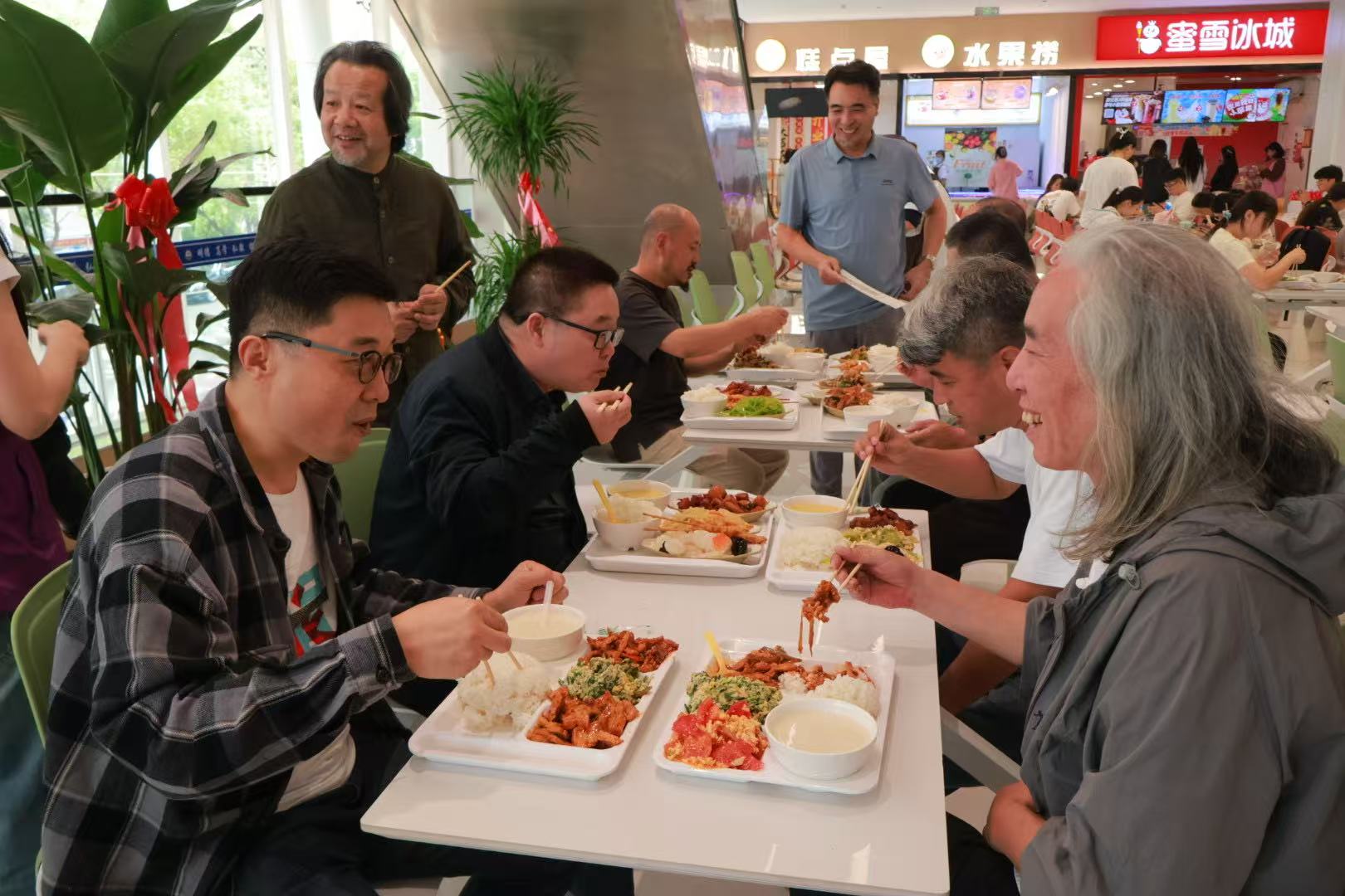随后,众人移步学校第一食堂,共同品尝承载青春记忆的“科大味道”。糖醋里脊、葱油饼、老豆腐等经典菜品上桌,瞬间唤醒校友们的校园记忆饭桌上,大家围绕求学时一起在画室熬夜创作、向老师请教书画技法的往事畅聊,烟火气中满是对母校的眷恋。