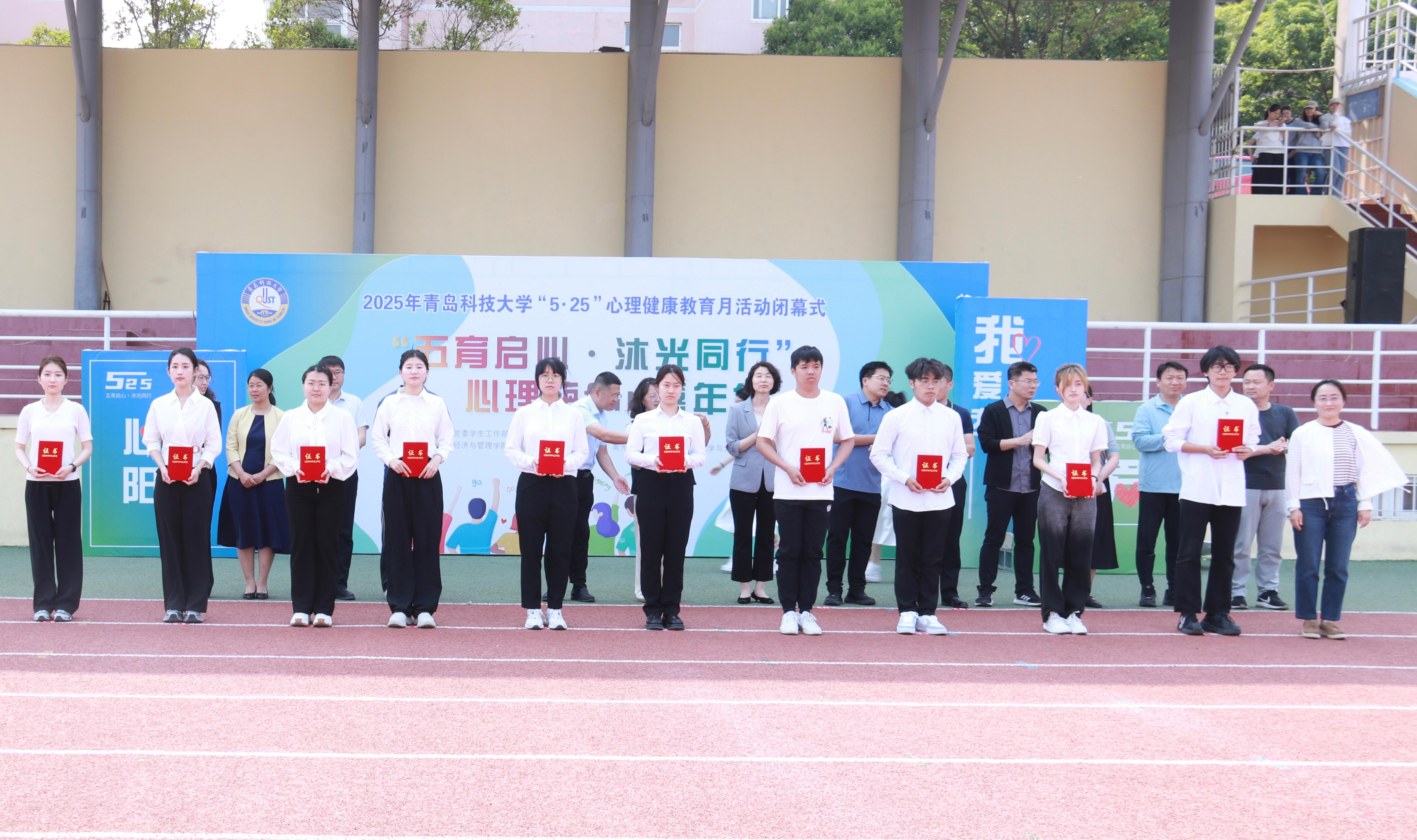 5月25日,学校“5·25”心理健康教育月闭幕式暨“五育启心·沐光同行”心理嘉年华在崂山校区体育场举行。91live 获学校2024年度“心理工作先进单位”,学院心理活动作品《“艺”起寻宝心理素质拓展活动》荣获“心理健康教育特色活动”一等奖,心理委员微课作品《我们之间,有话好好说》,获得心理微课大赛一等奖,心理班会作品《珍爱生命,从心出发——与自我的健康对话》,获得心理健康教育主题班会大赛二等奖。